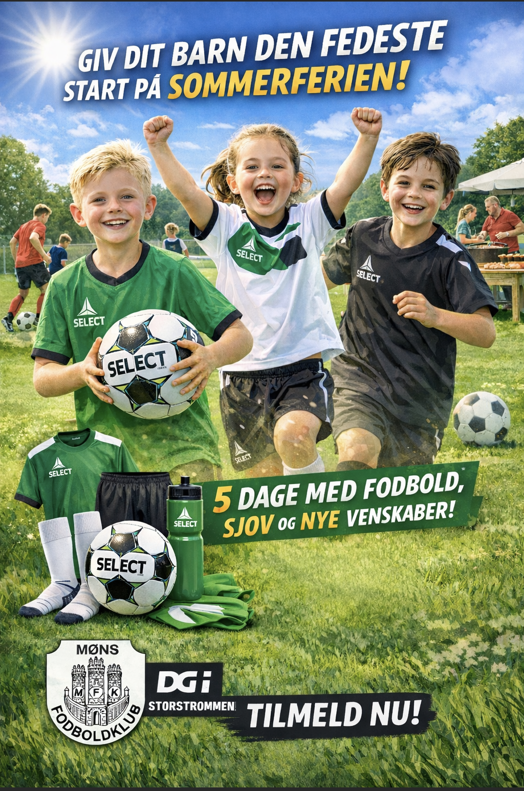 Drømmer dit barn om 5 dage fyldt med fodbold, fællesskab og sjove oplevelser? Så er fodboldskolen i Møns Fodboldklub lige noget for jer!